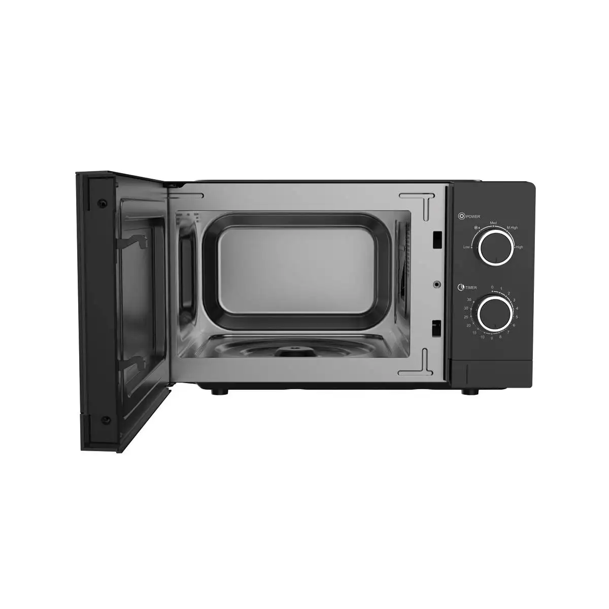 Featuring mechanical rotary controls, the HMW-20MX12 allows easy adjustment of cooking time and power levels. Its painted steel cavity ensures even heat distribution and durable operation.