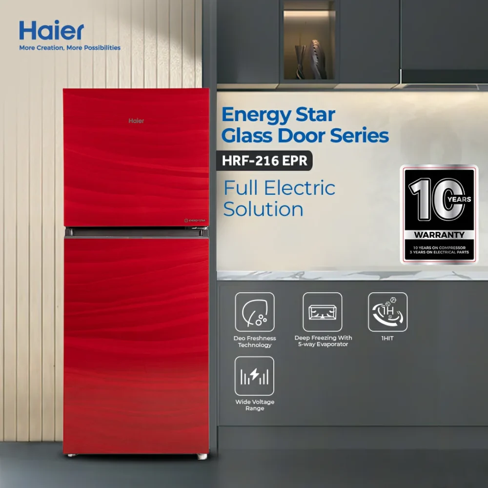 Meet the Refrigerator HRF-216EPB, a compact yet powerful cooling solution designed for small families and modern kitchens. It features a Digital Inverter Compressor for consistent cooling, energy savings, and quiet operation.