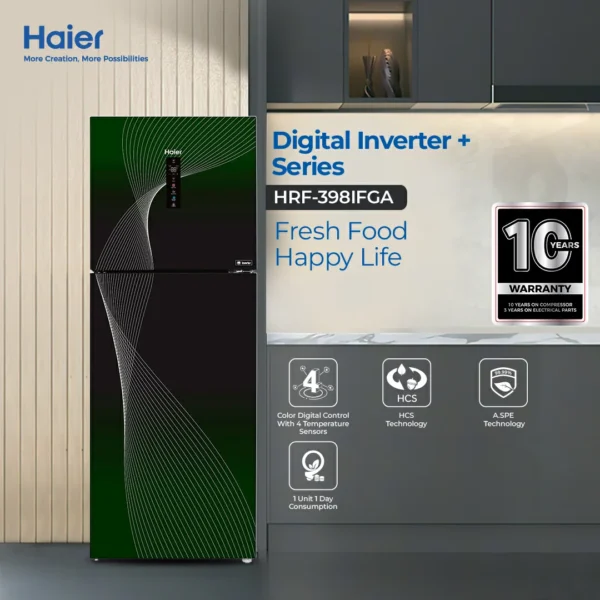 The Refrigerator HRF-398IFRA is designed to deliver premium cooling performance with a touch of elegance. Equipped with Digital Inverter Technology, it provides precise temperature control, quiet operation, and reduced energy consumption.