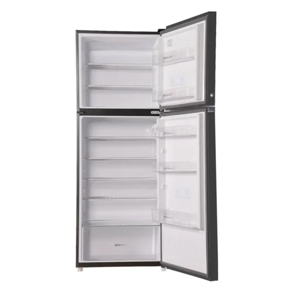 Its No Frost Cooling System prevents ice buildup, while Multi Airflow Cooling maintains uniform temperature and freshness throughout the compartments. With digital temperature control, LED lighting, and tempered glass shelves, it’s built for both style and practicality.