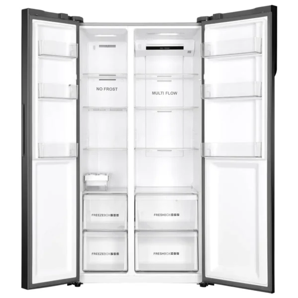 Featuring a side-by-side door design, this model offers generous storage capacity for all your food and beverages. The No Frost Cooling System eliminates the need for manual defrosting, while Multi Airflow Technology ensures uniform cooling across every shelf.
