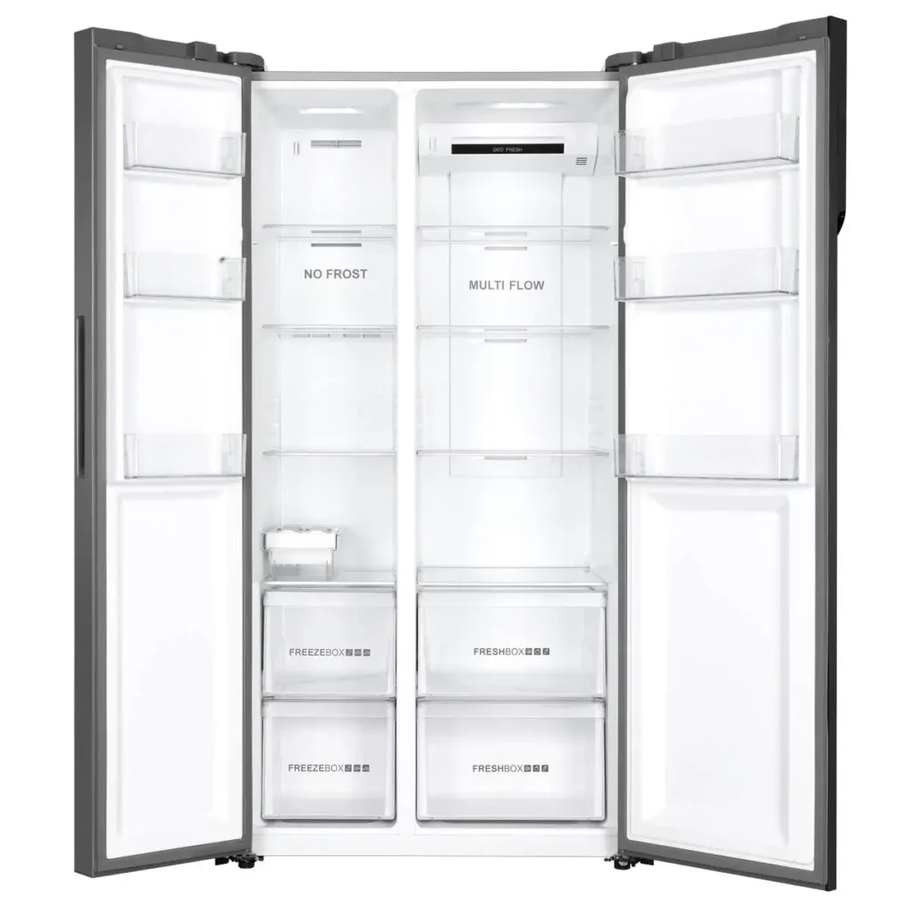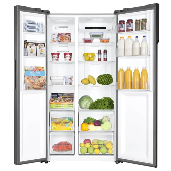 Its Side-by-Side Door Design provides easy access to fresh and frozen foods, while the No Frost Cooling System ensures even air circulation and prevents ice build-up. The LED Touch Control Panel allows convenient operation and temperature adjustment.