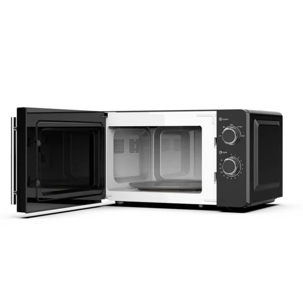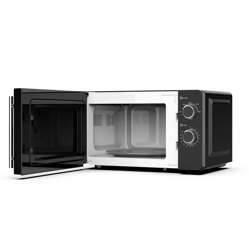 Equipped with mechanical rotary controls, it allows straightforward operation for adjusting power levels and cooking time. The high-efficiency microwave system ensures even heat distribution, providing consistent results for reheating, defrosting, or basic cooking.
