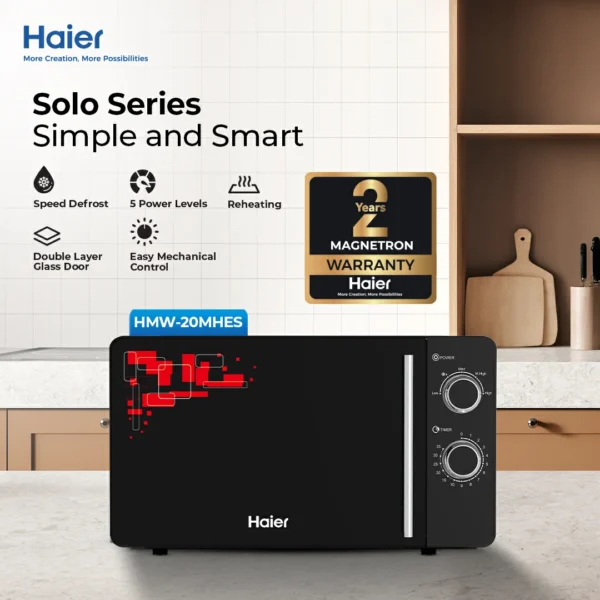 The Microwave Oven HMW-20MHES combines simplicity, reliability, and style to meet your everyday cooking needs. With a 20-liter capacity, this compact microwave is ideal for individuals, students, or small families who want fast and easy meal preparation.